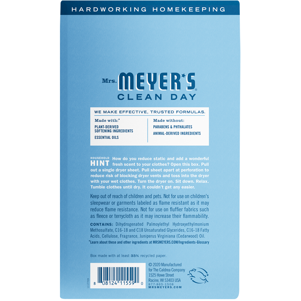 Mrs. Meyers Rain Water Dryer Sheets - Case of 12