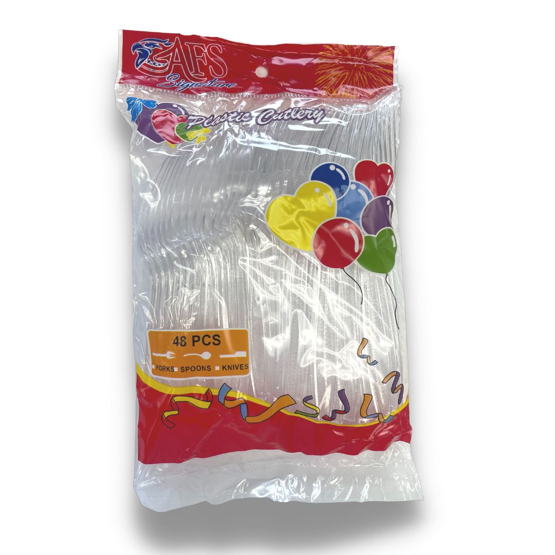 AFS - Cutlery Forks/Knives/Teaspoons Clear Heavy Weight, 48 Pack - Case of 24