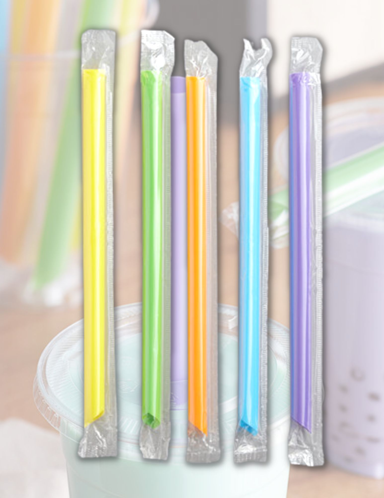 AFS - Individually Wrapped Plastic Boba Straws .39" x 7.5" 100 Pack, Assorted Colors - Case of 50 Packs