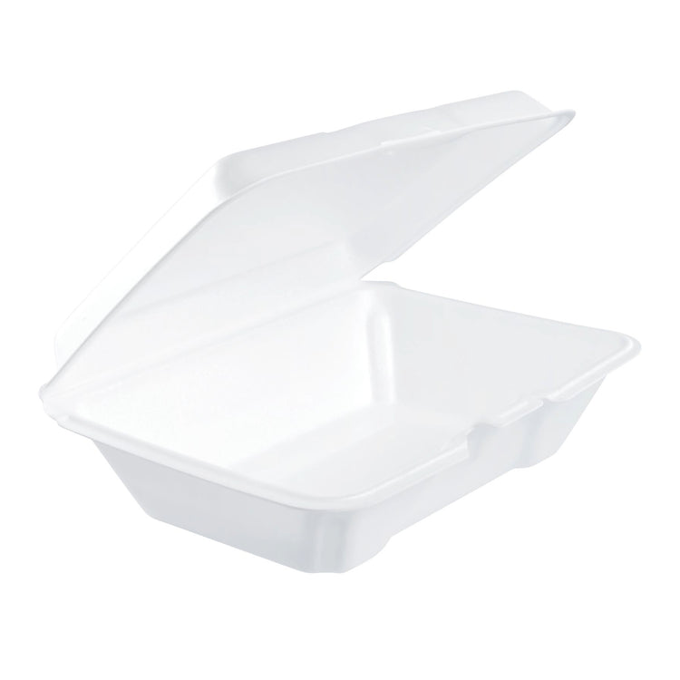 Carryout just wouldn't be the same without these classic white hinged-lid containers! And with these, sending leftovers home with loved ones is a breeze. Use this single-compartment container for hot or cold foods. Insulated and non-absorbent, these containers will keep your food at the right temperature without any sauce or grease soaking through. Not only is the lid closure top notch, the perforated hinge makes it easy to remove the lid completely for a more enjoyable dining experience. Whether you’re serving up the best takeout in town, dishing up food truck fare or stepping up your holiday gathering leftovers game, choose the supreme durability of Dart containers.
