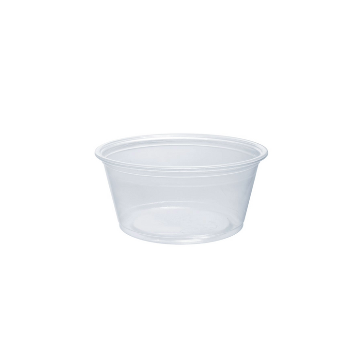 Conex Complements portion containers are perfect for any purpose. Serve everything from salad dressings and toppings to signature sauces and sides! Dish up hot or cold condiments, like cool ranch dressing or warm maple syrup. Pair with the compatible leak-resistant lid (sold separately) to securely transport food delivery and takeout. With these, you avoid soggy meals and sloppy messes with sleek style. They can even be used to distribute medicine in medical facilities. The uses for these 3.25 oz crack-resistant containers are truly endless! Made of recyclable PP; check locally, may not be recycled in your area.