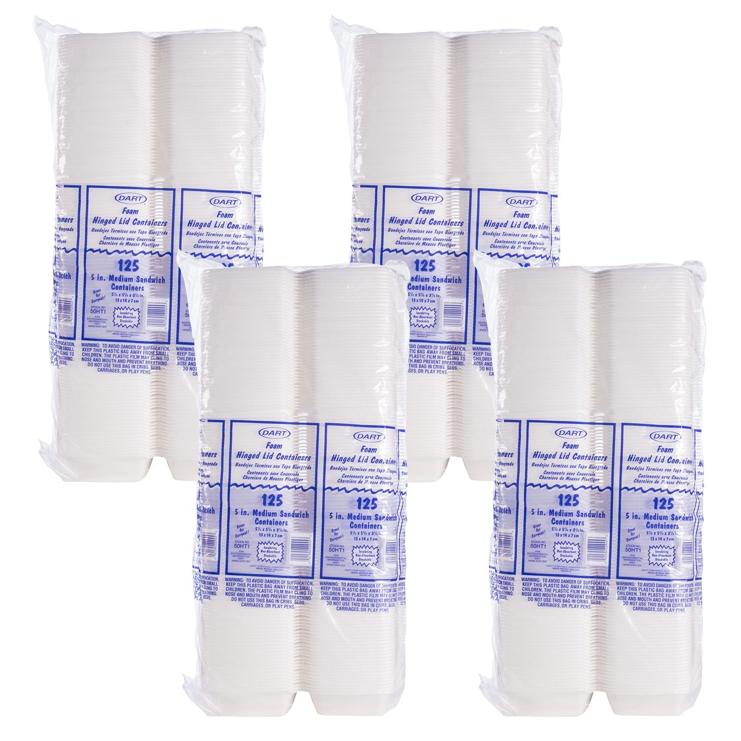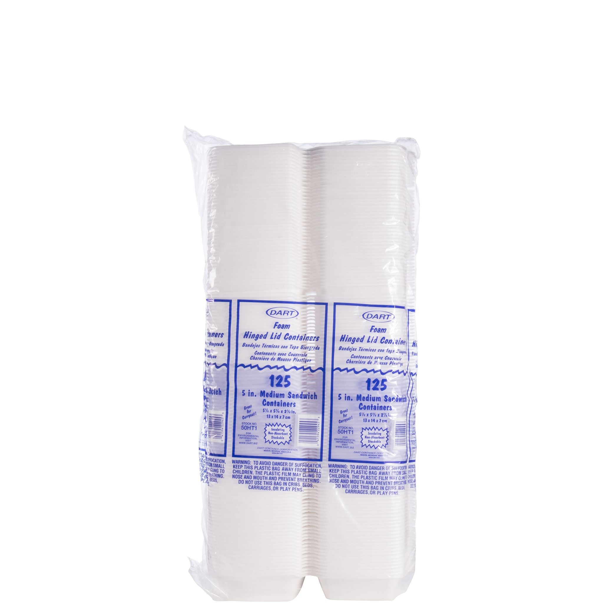 Dart 50HT1 - 5 in Medium XPS Foam Sandwich Container, White - Case of 500