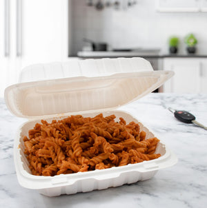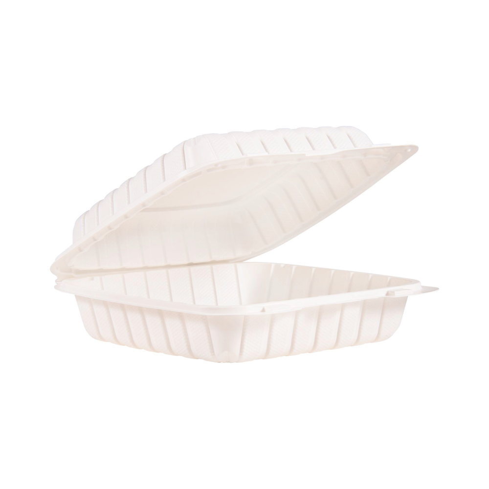 Plastic Hinged Container 9" x 9" x 1" White PP Mineral 150/Cs Dart 90MFPPHT1R