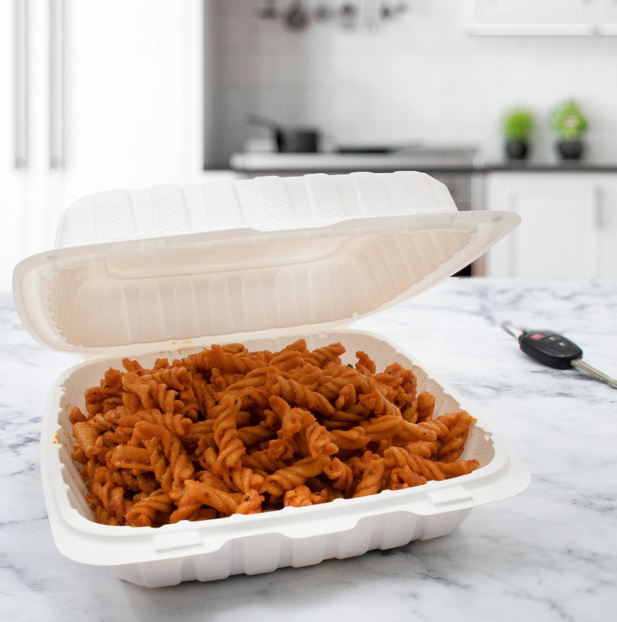 Dart 90MFPPHT1R - 9 in PP Plastic 1 Compartment Hinged Container, White - Case of 150