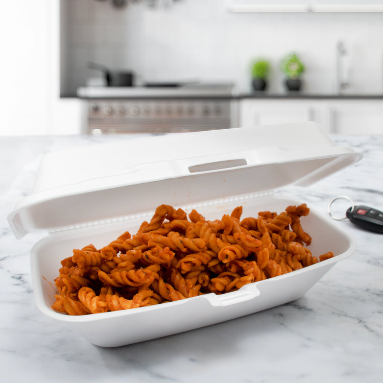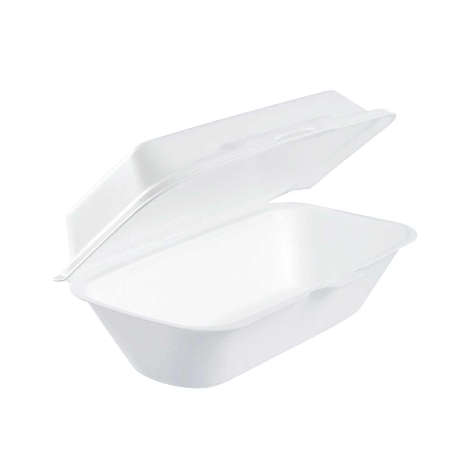 The insulated container ensures food remains at the proper serving temperature which is beneficial for customer satisfaction and food safety. Its foam material allows for an economical decision over other materials. Its two compartments provide effortless organization for storing a main dish and its perforated hinge facilitates removal of the lid for a less distracted dining atmosphere. The removed lid can also be used as an extra plate, and the secure closure tabs guard against sudden openings or leaks. Rest assured knowing the single compartment hinged lid take out container is CFC free, not manufactured with Chlorofluorocarbon chemicals detrimental to the ozone layer.