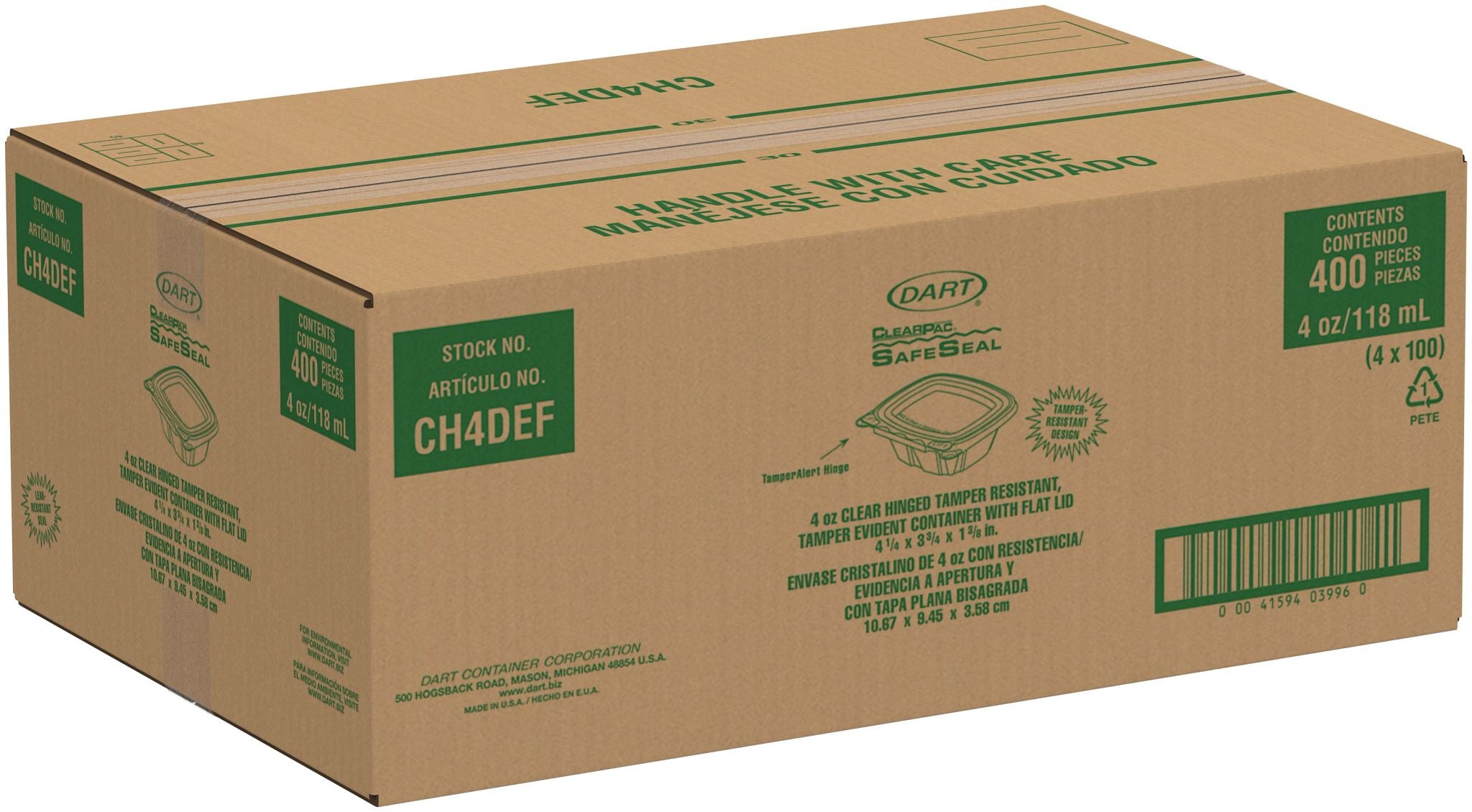Container 4oz w/Flat Lid SafeSeal Clear Tamper Evident/Resistant 100Pk/400Cs CH4DEF