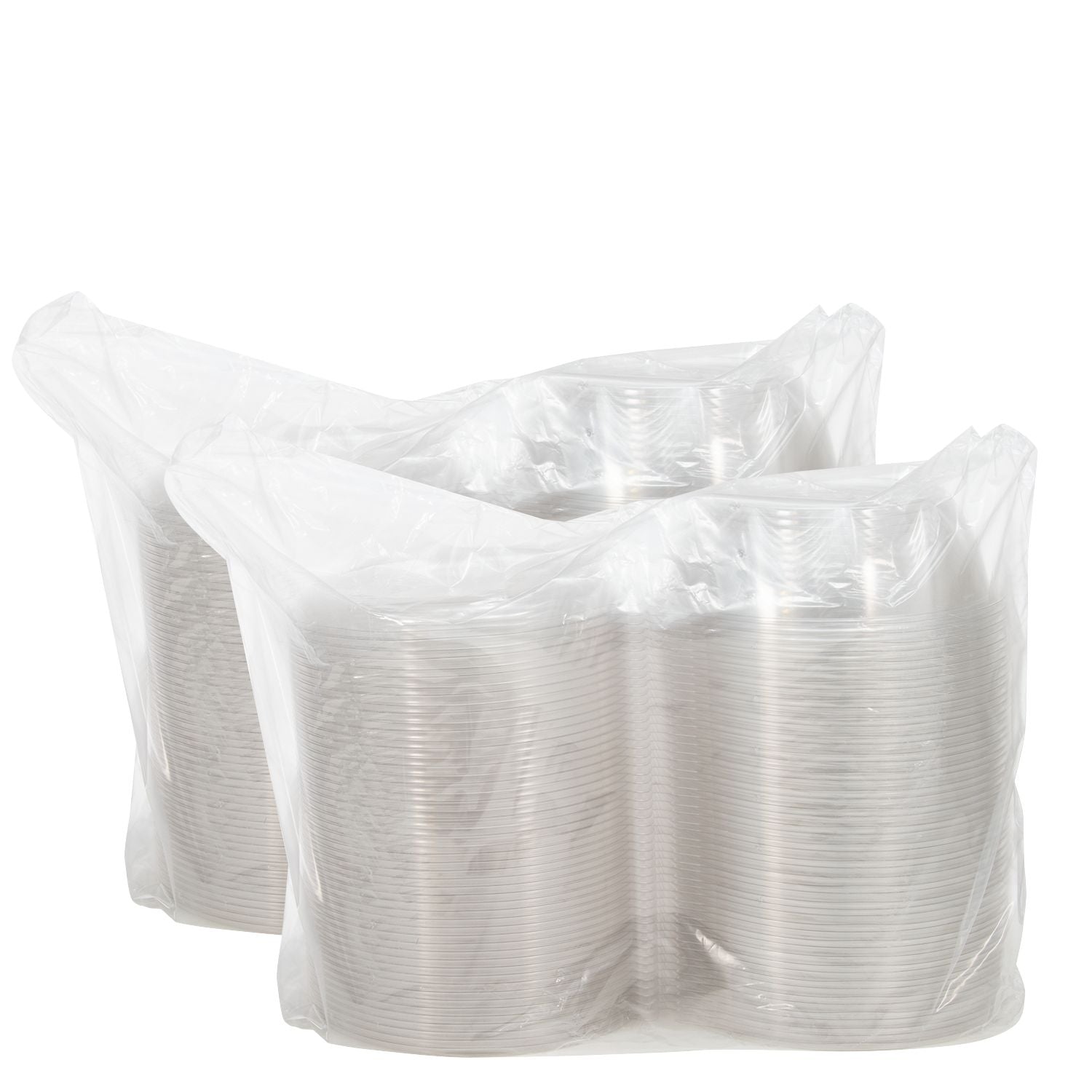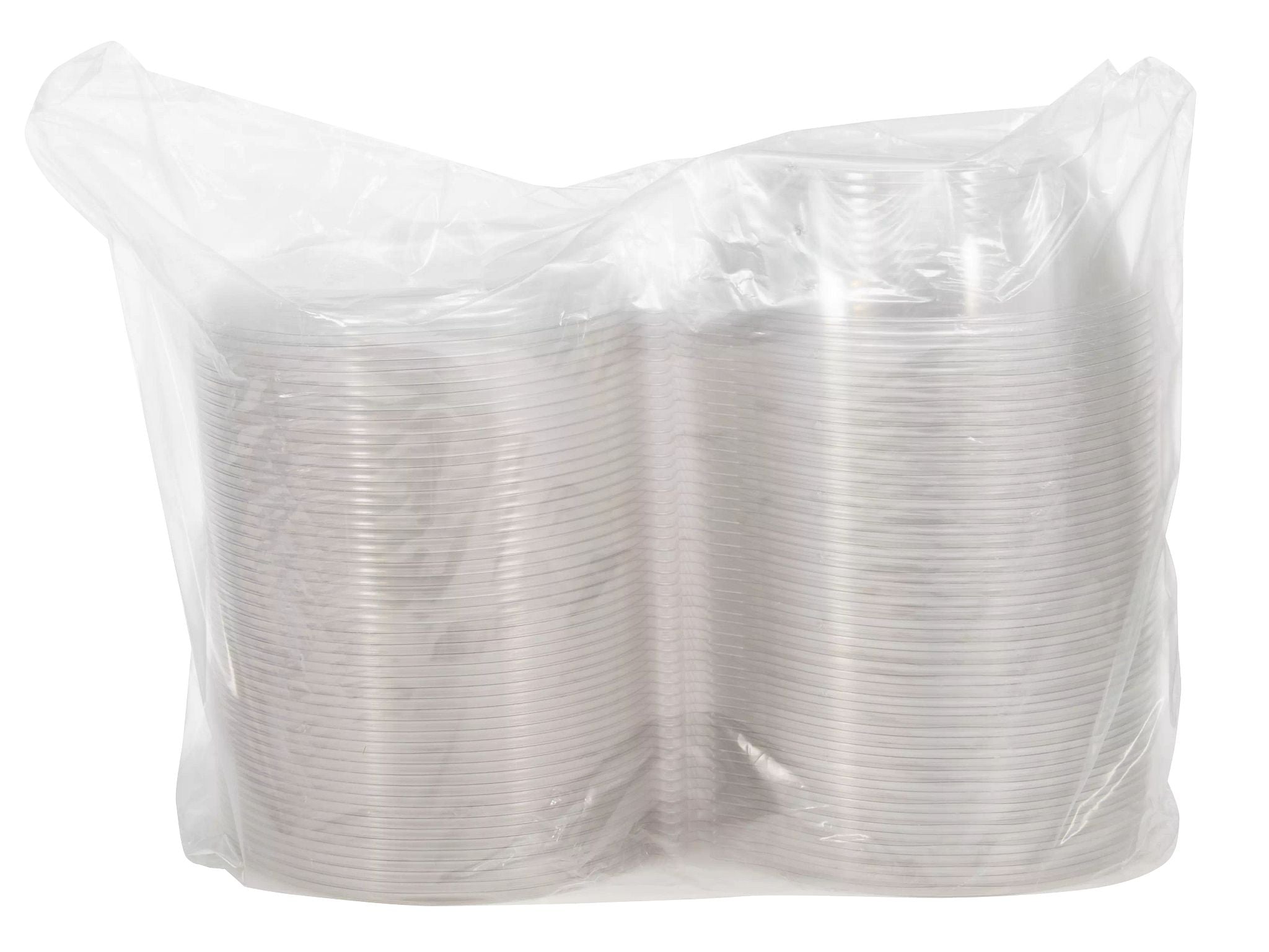 - Includes 100 clear hinged-lid containers (2 sleeves, 50 containers per sleeve).