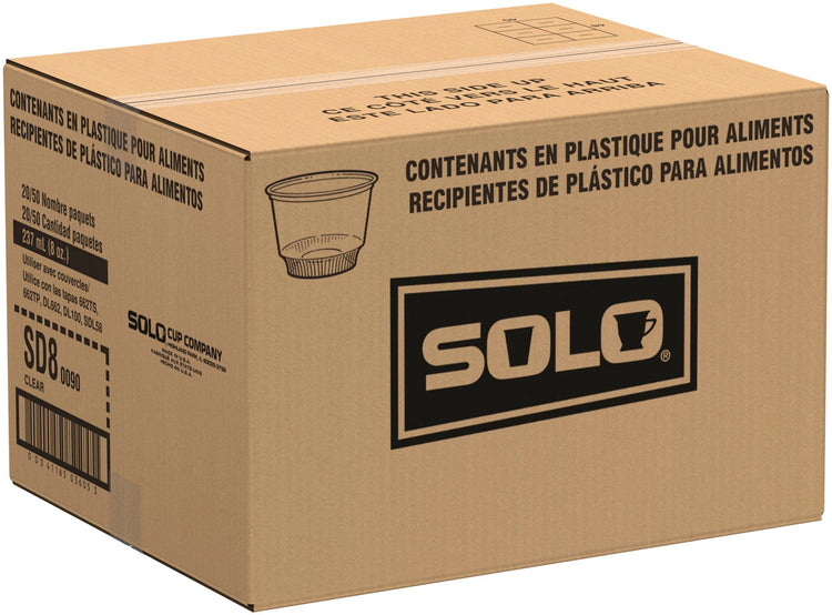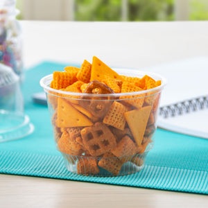 Sundaes, fruit cups and snacks look their absolute best in SoloServe® Clear Plastic Sundae Cups. Use to serve desserts or package snacks-to-go that are as visually appealing as they are delicious! Durable and crack-resistant, not a single bite will be lost to spills or leaks. These 8 oz containers are perfect for ice cream shops, cafeterias and delis! Pop on a lid and desserts are ready to be taken on-the-go. Package cut fruit, crackers and other snacks, for irresistible merchandising at grab-and-go counters. Compatible flat and domed lids are sold separately. Made of recyclable PET; check locally, may not be recycled in your area. Made in the USA with U.S. and global materials.