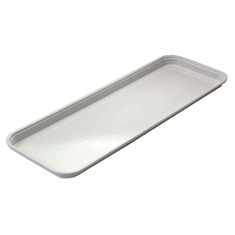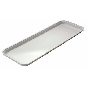 Make use of these white serving trays for any display purpose. Use them in a deli or bakery case for a clean and neat presentation of your delectable baked goods. These white serving trays resist stains, thus allowing you to maintain a neat display. The surface will not trap odors, eliminating any risks of cross contamination and smells that can make your presentation very unpleasant. The 25 1/2" x 8 3/4" x 1" display platter is dishwasher-safe to support simple and easy cleaning. Dri-Stak separators are built in and help the units air dry quickly for immediate reuse.