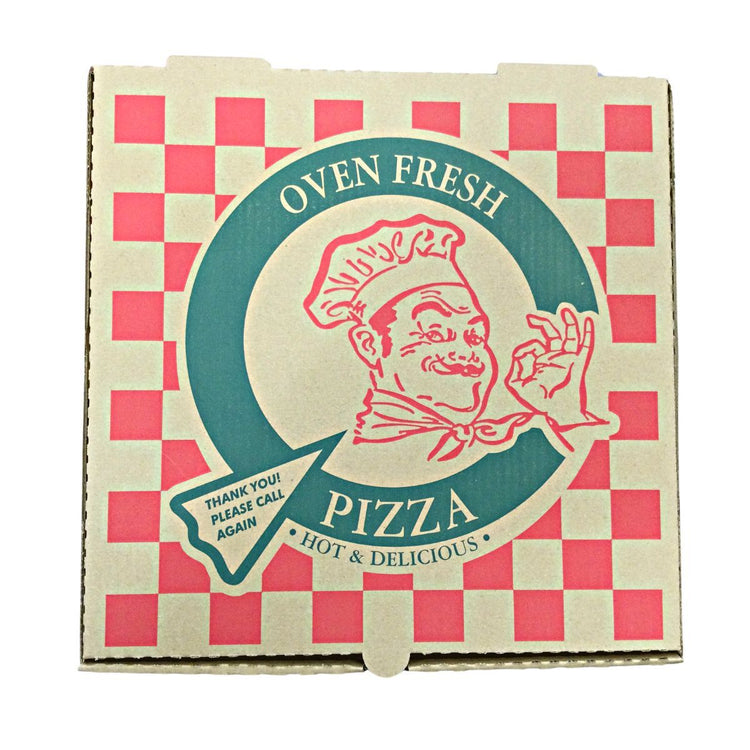 Pizza Box 16" x 16" Kraft B-Flute Corrugate w/Cafe Design 50/Bundle